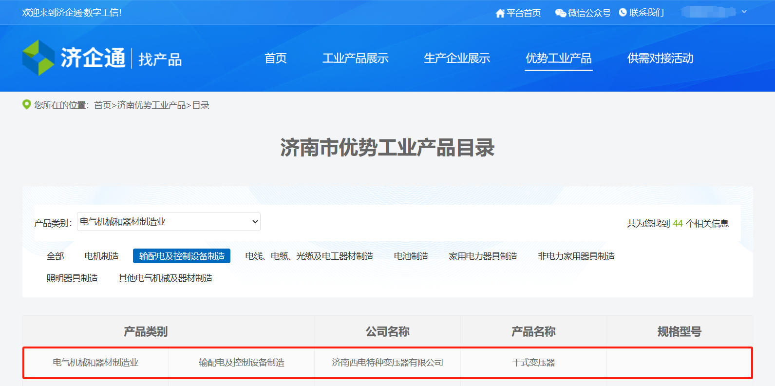 近日,济南西电特种变压器有限公司主打产品干式变压器成功入选济南市优势工业产品目录。