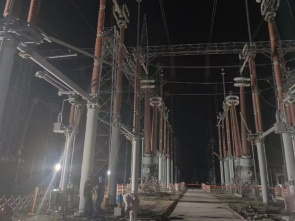 国网新疆三塘湖750千伏变电站工程现场母线完成送电