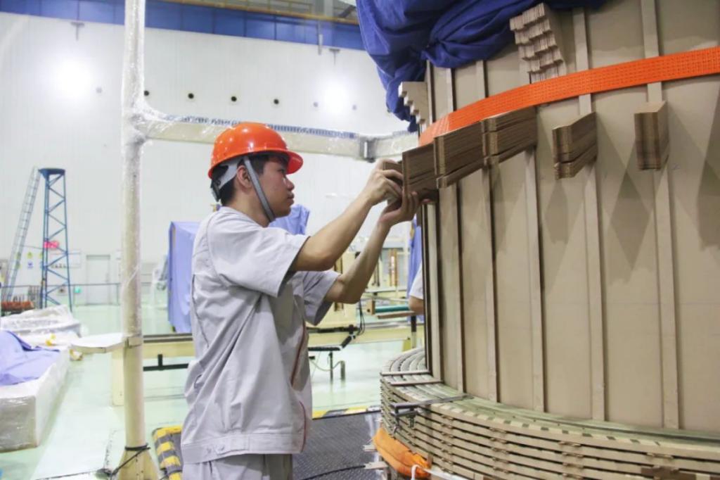 由中国西电所属西电常变承制的川渝特高压交流工程天府南1000kV变电站新建工程,共7台1000kV/1000MVA双百万主变,其中2台已顺利投产。首台主变中压、低压线圈、高压线圈已完工,第二台高压、中压、低压线圈开始绕制,铁心叠装工作也在按计划推进。川渝特高压交流工程是连接四川、重庆的电源和负荷中心的电力高速路,建成后每年可输送清洁电能超过350亿度,对构建清洁低碳、安全高效的能源体系,保障区域能源安全,具有重要意义。为高质高效完成该项目首批2台双百万主变,团队积极统筹排产,狠抓质量进度,合理安排、有序作业,全力保障产品顺利生产。