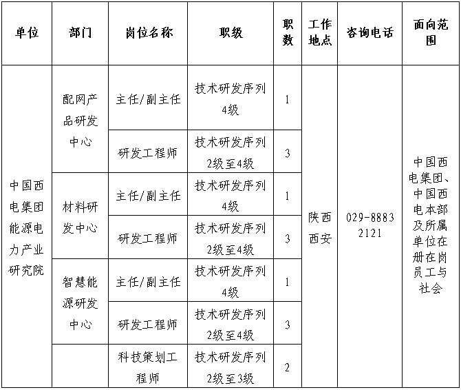 1.本次面向中国西电集团、中国西电本部及所属单位在册在岗员工与社会进行公开招聘;